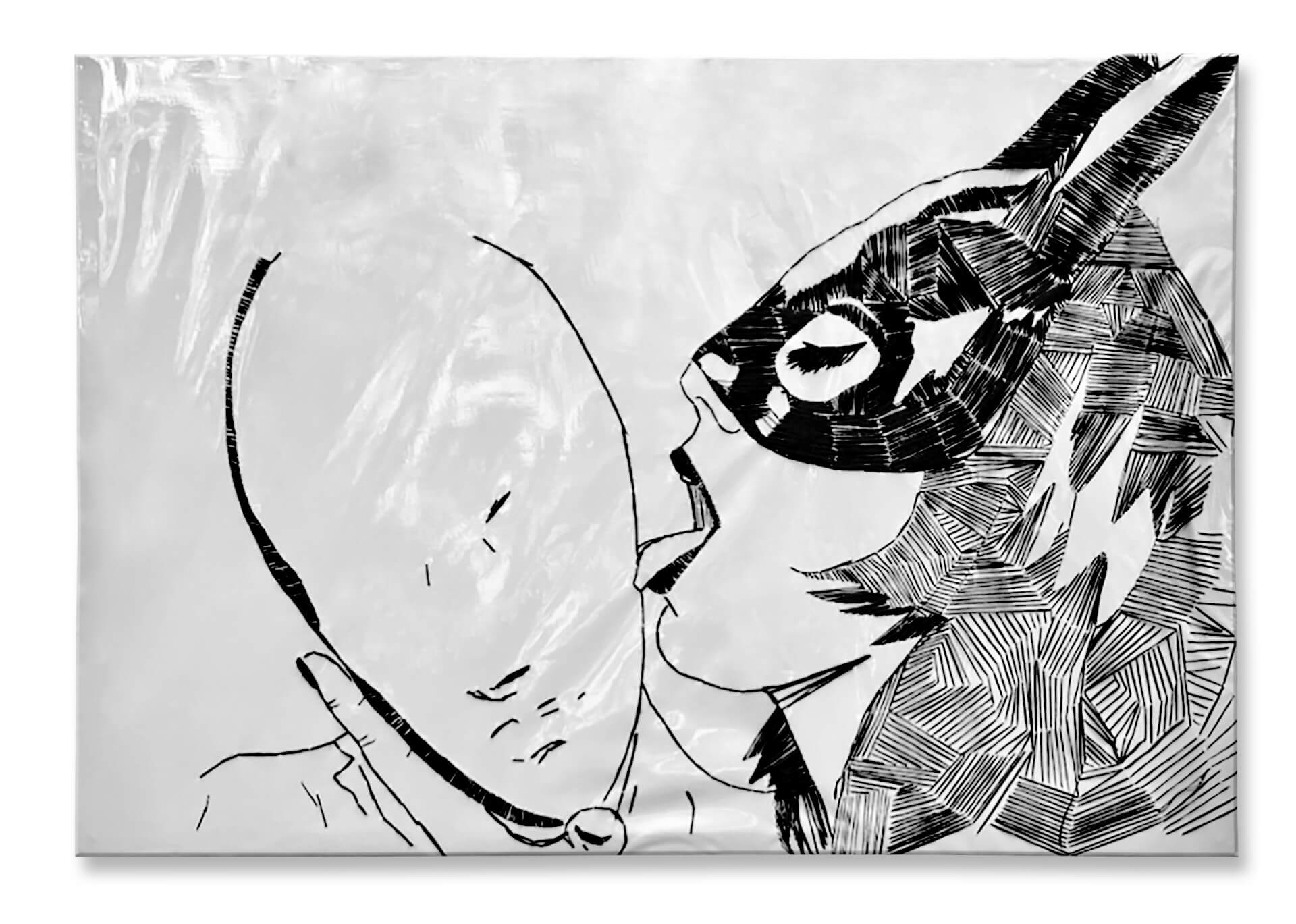 Lick; vegyes technika, hímzés; műbőr; 165×110 cm; 2019 (Fotó: Tóth Xénia)